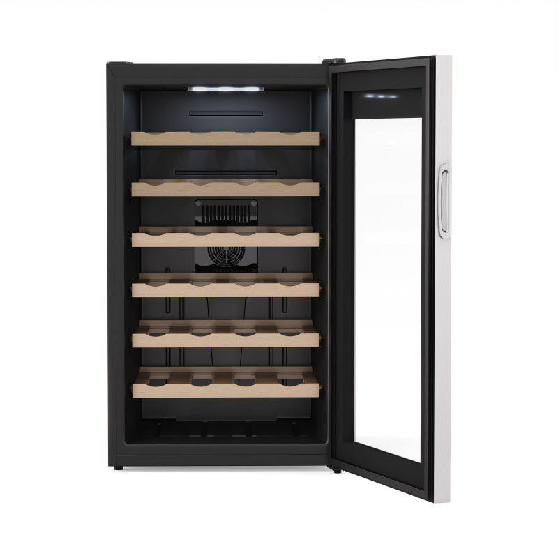 O lançamento conta com capacidade para 28 garrafas (padrão Bordalesa), tecnologia Low-E na porta para proteger as garrafas da luz UV externa e mantém o interior da adega em até 13 ºC a menos em relação a temperatura externa.