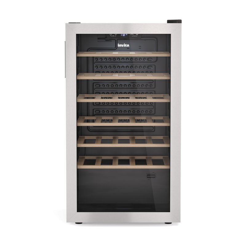 O modelo possui capacidade de 34 garrafas (padrão Bordalesa), e opera na temperatura de 5 °C a 20 °C, permitindo o armazenamento de qualquer tipo de vinho. Conta com porta em aço inoxidável, prateleiras em madeira e tecnologia Low-E, que minimiza a entrada de luz UV, protegendo o vinho e reduzindo o acúmulo de umidade na porta. É perfeita para compor o ambiente ao lado da Beer Center Invita Inox 85 litros, garantindo um design uniforme ao projeto.