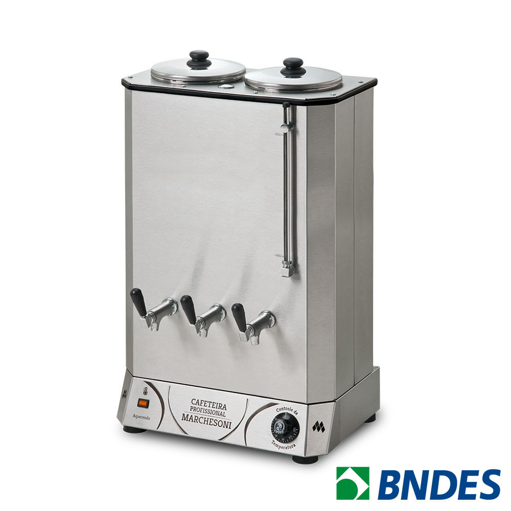 As cafeteiras da linha Profissional Marchesoni foram desenvolvidas para atender com segurança as maiores demandas no serviço de alimentação. Seus modelos chegam até 50 litros de capacidade.