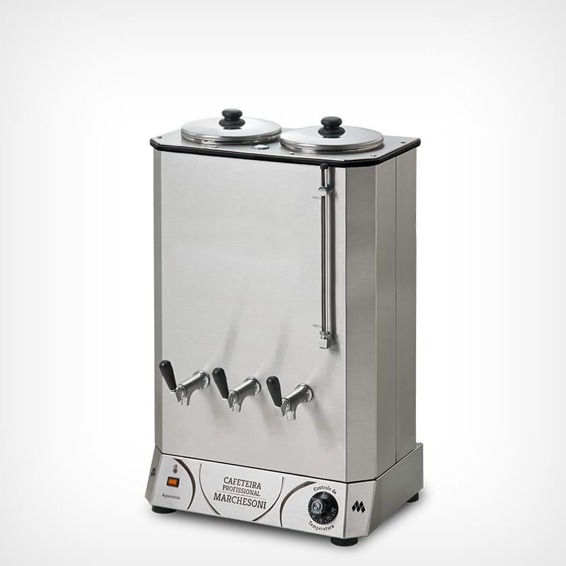As cafeteiras da linha Profissional Marchesoni foram desenvolvidas para atender com segurança as maiores demandas no serviço de alimentação. Seus modelos chegam até 50 litros de capacidade.
