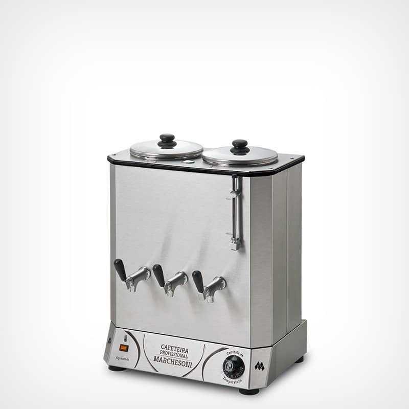 As cafeteiras da linha Profissional Marchesoni foram desenvolvidas para atender com segurança as maiores demandas no serviço de alimentação. Seus modelos chegam até 50 litros de capacidade.