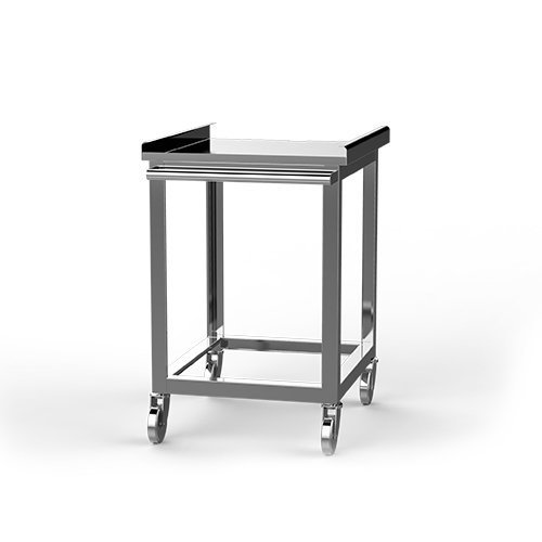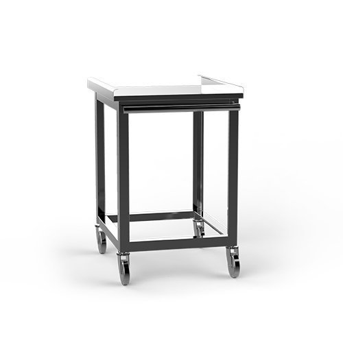 - Dotado de 4 rodízios, sendo dois giratórios e dois fixos com travas;