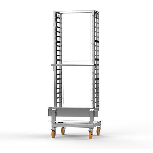 - Dotado de 4 rodízios, sendo dois giratórios e dois fixos com travas;
