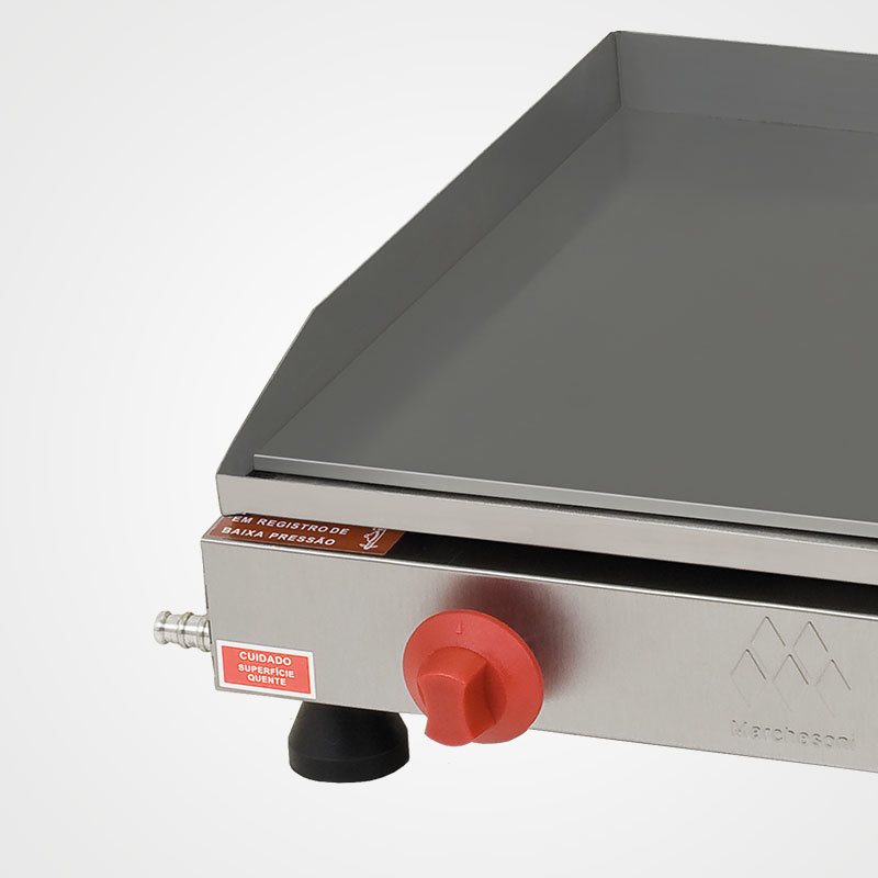 As chapas da linha Comercial Marchesoni destacam-se pelo melhor custo benefício do mercado. Fabricadas em aço inox escovado, as Chapas da Linha Comercial possuem queimadores em alumínio que não enferrujam, botões reguláveis da vazão de gás e gaveta coletora de óleo. A Marchesoni oferece ainda como acessório a “Prensa”. Elas são adaptáveis nas Chapas Comerciais e podem ser adquiridas separadamente. São perfeitas no preparo dos famosos lanches prensados. As Chapas da Linha Comercial Marchesoni são indicadas para bares, lanchonetes, restaurantes, trailers, food trucks, hotéis, comércio ambulante e cozinhas em geral.