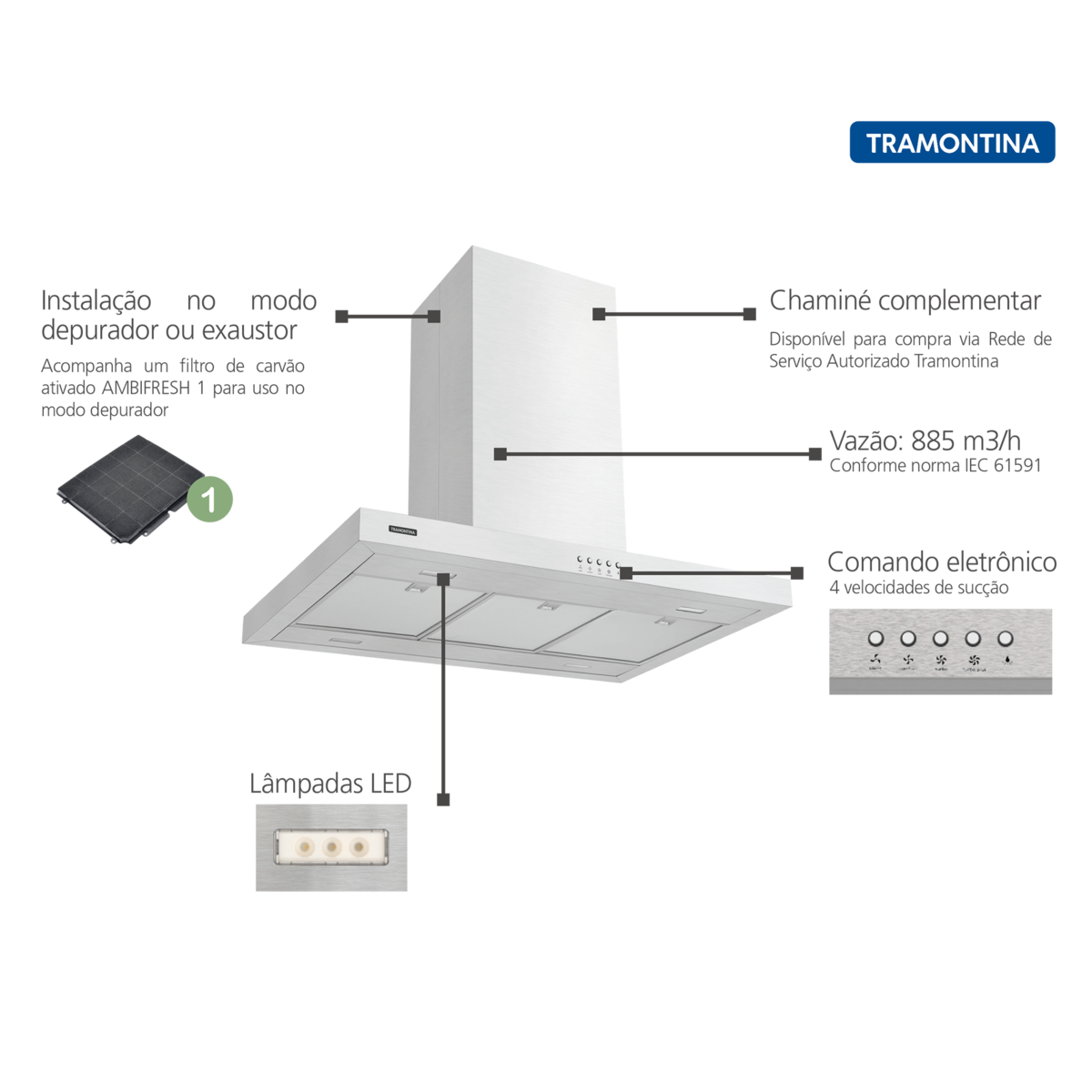 COIFA NEW DRITTA ISLA 90 127V – Tramontina