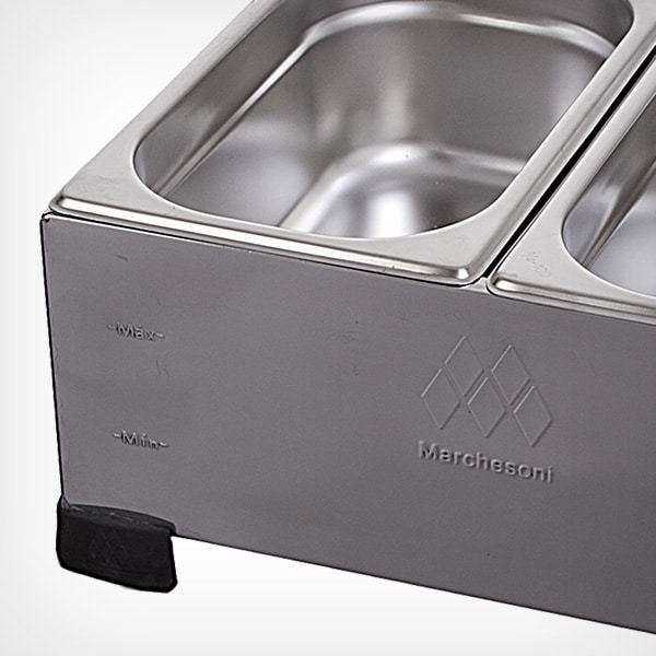 • Corpo em aço inox 430 e cuba gastronômica em aço inox 304 – Não enferruja;