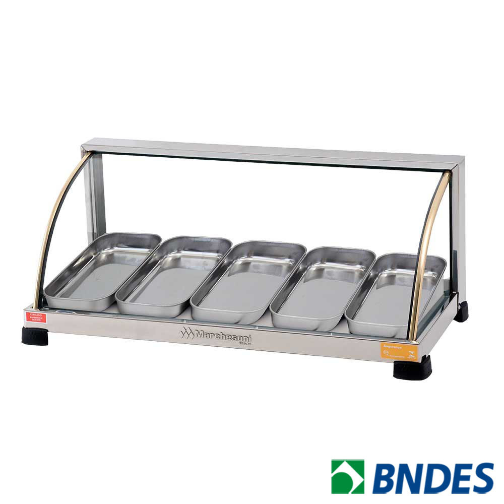 As estufas da linha Ouro Marchesoni destacam-se pelo melhor custo benefício do mercado e são ideais para expor com elegância e manter seus produtos sempre quentinhos. Fabricadas em aço inox, frisos dourados e vidros temperados as Estufas Ouro Marchesoni valorizam a exposição dos seus produtos alavancando suas vendas. Possuem em todos os modelos termostato de temperatura automático, lâmpada piloto indicadora de aquecimento e umidificador que evita o ressecamento dos alimentos.