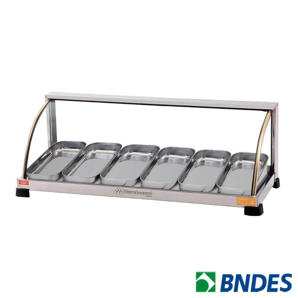 As estufas da linha Ouro Marchesoni destacam-se pelo melhor custo benefício do mercado e são ideais para expor com elegância e manter seus produtos sempre quentinhos. Fabricadas em aço inox, frisos dourados e vidros temperados as Estufas Ouro Marchesoni valorizam a exposição dos seus produtos alavancando suas vendas. Possuem em todos os modelos termostato de temperatura automático, lâmpada piloto indicadora de aquecimento e umidificador que evita o ressecamento dos alimentos.