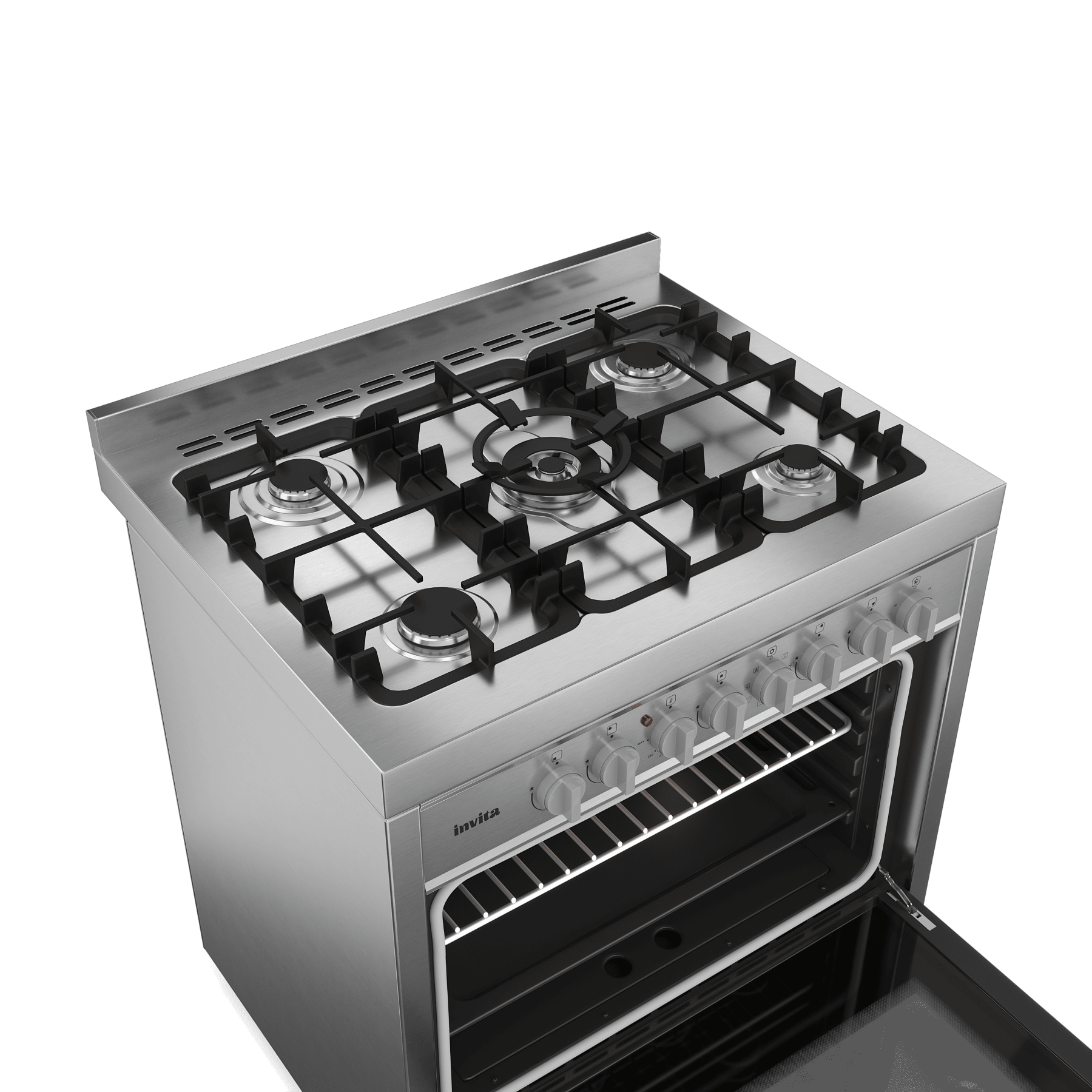 O Fogão de Piso Invita 75 cm combina a potência dos queimadores a gás com a praticidade do forno elétrico, oferecendo desempenho e design premium em espaços compactos. Com 5 queimadores, incluindo um Dual Flame, acendimento superautomático e forno com motor de convecção para cocção homogênea, ele proporciona precisão, potência e versatilidade. Seu acabamento em aço inoxidável e a instalação freestanding garantem sofisticação e praticidade em qualquer ambiente.