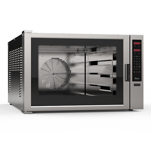Fornos compactos recomendados para panificação e confeitaria em padarias ou pontos quentes, que são pequenos espaços destinados a assar ou finalizar produtos. Também podem ser utilizados como fornos vitrine, colocados na área de venda para atrair clientes.