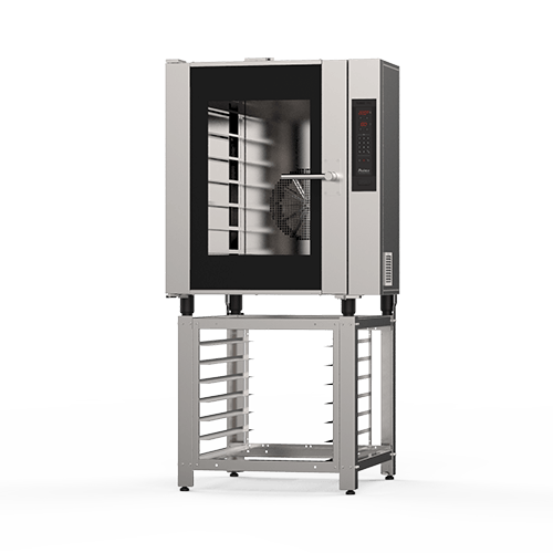 Todos os benefícios dos fornos de convecção somados à padronização por meio da programação de receitas, controle de tempo, temperatura e vaporização por tempo ou intervalos.
