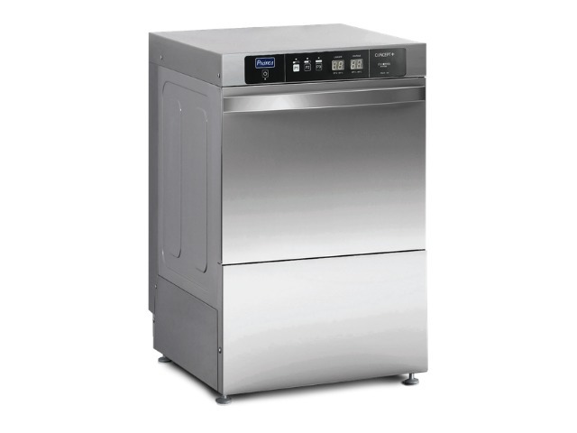 Construídas integralmente em aço inoxidável, as máquinas de lavar louças Prática +Concept são rápidas, silenciosas e produtivas. Com duas pranchas coletoras, sua máquina estará livre de resíduos sólidos e seu sistema automático que regenera a água, garante também a drenagem de qualquer tipo de resíduo que ainda esteja instalado na mesma. Além de sua fácil instalação, propaga pouco calor no ambiente apesar de trabalhar com altas temperaturas, e devido a isso, dispensa também o uso de pano e álcool na finalização de cada ciclo de lavagem. A higienização do equipamento também é fácil, já que os cantos do tanque de água são arredondados, evitando o acúmulo de sujeira. Pensando também na fragilidade de determinados materiais que possam vir a ser colocados na lava louça, como cristais e louças delicadas, a velocidade inicial dos braços de lavagem reduz, evitando a movimentação indesejada das louças e consequentes quebras.